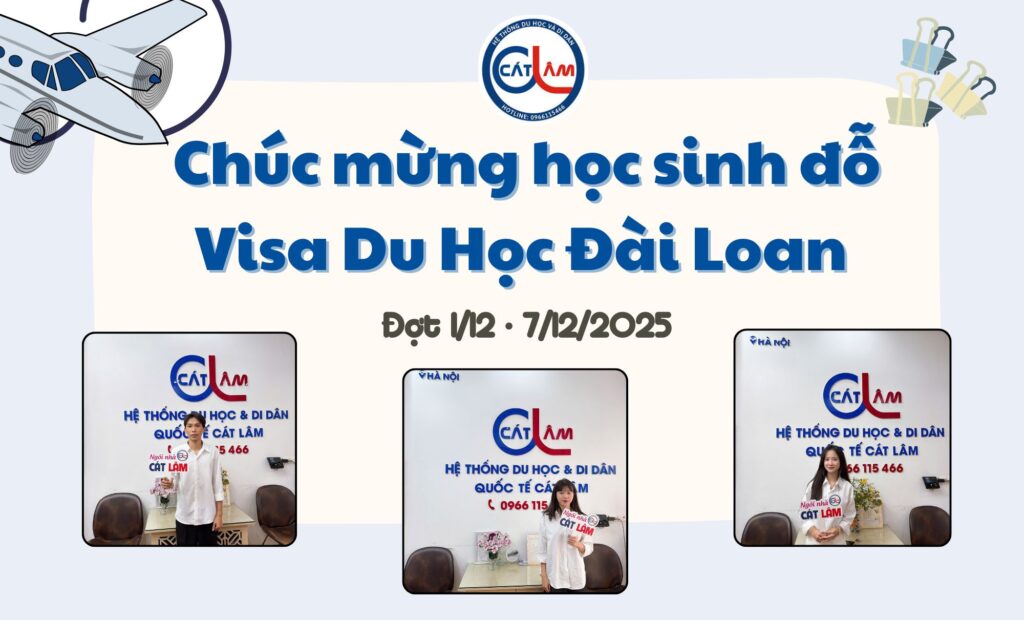 Tháng 12 tiếp tục là cột mốc đáng nhớ khi ba học sinh của Cát Lâm xuất sắc đỗ visa du học Đài Loan và đỗ phỏng vấn hệ Ngôn ngữ tại các trường đại học uy tín. Đây là kết quả đến từ sự nỗ lực học tập, chuẩn bị hồ sơ đúng tiêu chuẩn và luyện phỏng vấn bài bản theo từng trường.